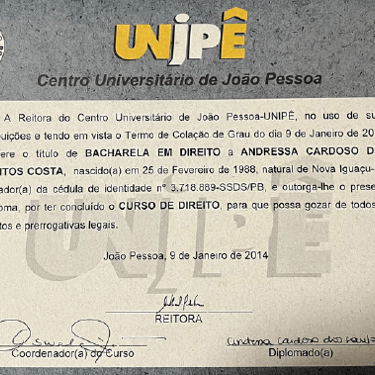 Andressa Costa é uma profissional de perfil influente, comunicativa e amigável, capaz de construir relacionamentos sólidos e conduzir negociações com diplomacia. Possui facilidade para liderar equipes, mediar e resolver conflitos com equilíbrio e assertividade. Atua com persistência e forte orientação para resultados, mantendo um senso de urgência aguçado que lhe permite tomar decisões rápidas e eficazes, mesmo em cenários de alta pressão.